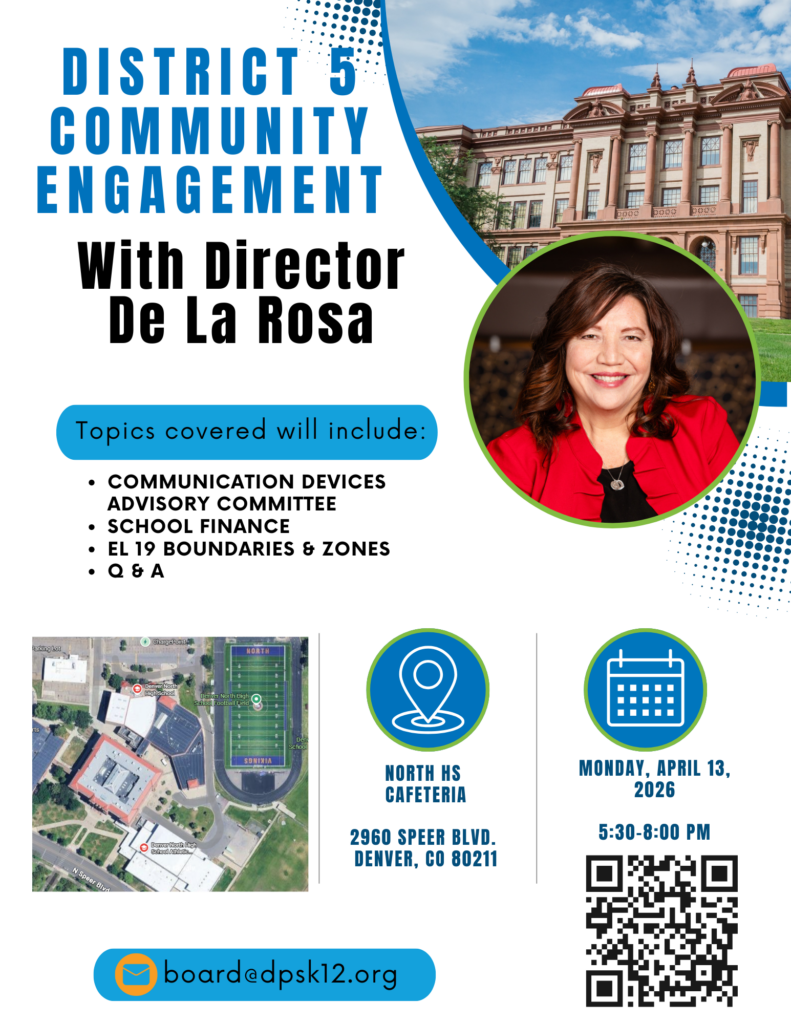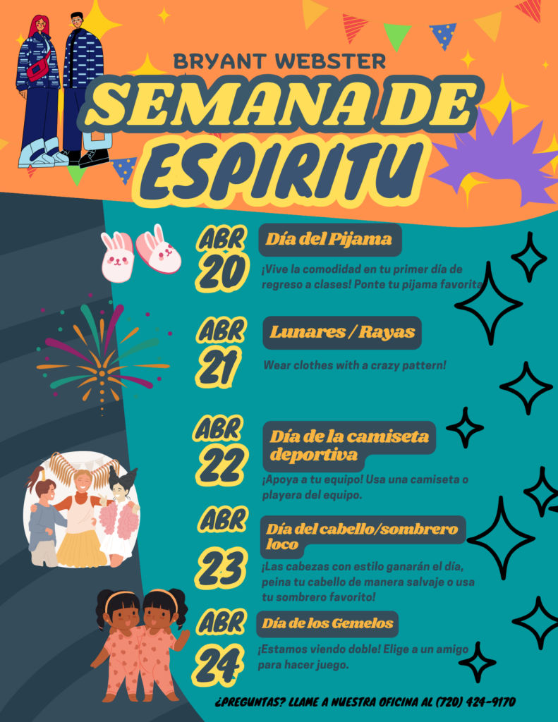 • Gracias a quienes asistieron esta mañana al café con los directores. El equipo administrativo, nuestro grupo de padres y los colaboradores del distrito compartieron cómo estamos trabajando juntos para mantener a salvo a nuestras familias más vulnerables durante estos tiempos de incertidumbre. Si tienen alguna pregunta al respecto, por favor no duden en llamarme a la oficina al 720-424-9175 para conversarlo. Para ver cómo el distrito está apoyando la creación de un entorno escolar seguro, por favor visiten su sitio web. El enlace se encuentra aquí.